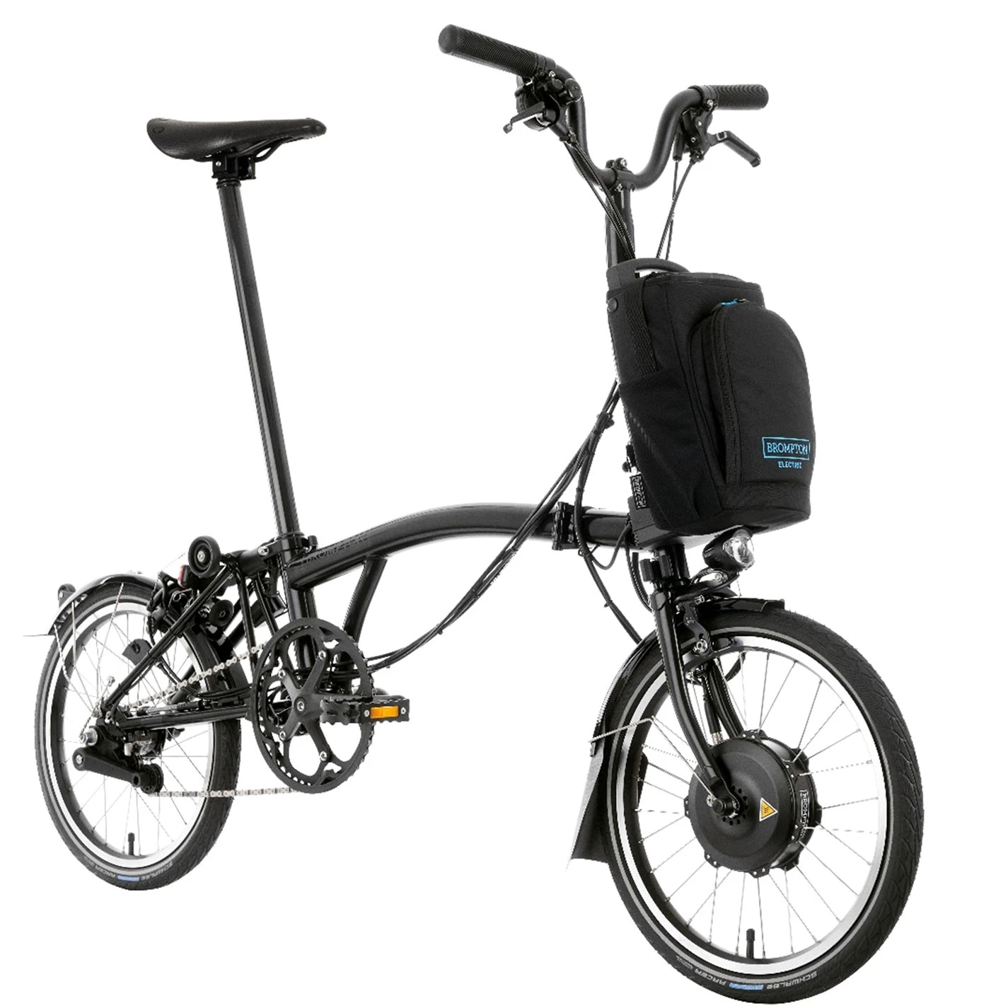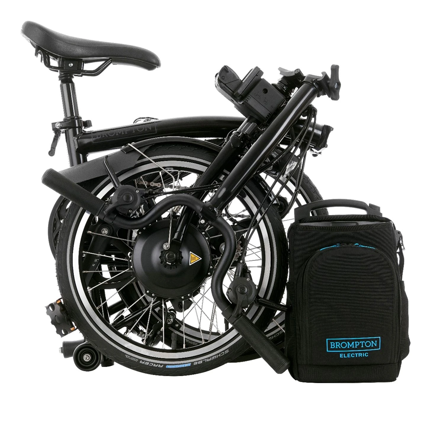 - The compact Brompton Electric 300wh lithium-ion battery packs in the power. And when it comes to charging, it’s as easy as plugging in your phone. Remove the battery pack (2.9 kg including bag) with one quick click. Plug into any regular socket. Fully charge in 4 hours. Boost for less if you’re short on time.