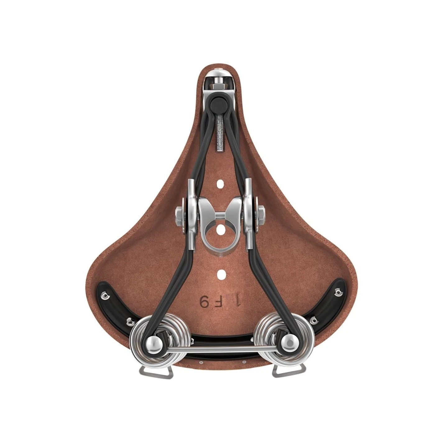 > Durable, 5mm Vegetable Tanned Leather > Shorter nose for women and smaller riders > Chromed Springs and Frame Assembly > Double Rail System for Traditional Seat Clamps > Tubular steel rivets > Distinctive side stamp > Iconic Brooks backplate