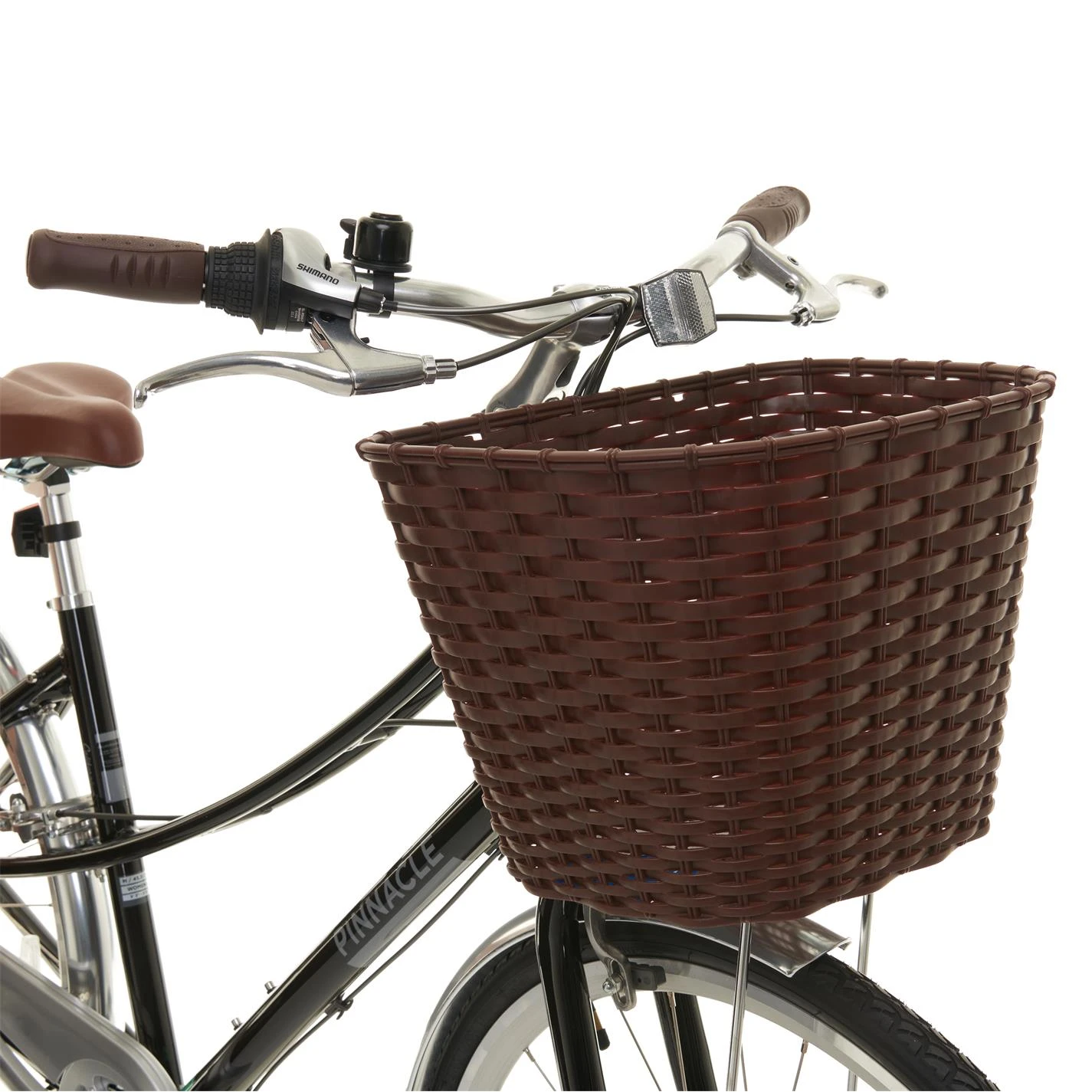 The Pinnacle Californium comes complete with mudguards and chain cover so you can keep smiling through the puddles. The practical front basket lets you take a load off your shoulders and the included kickstand means you can park your new pride-and-joy anywhere. Just don’t forget your lock!