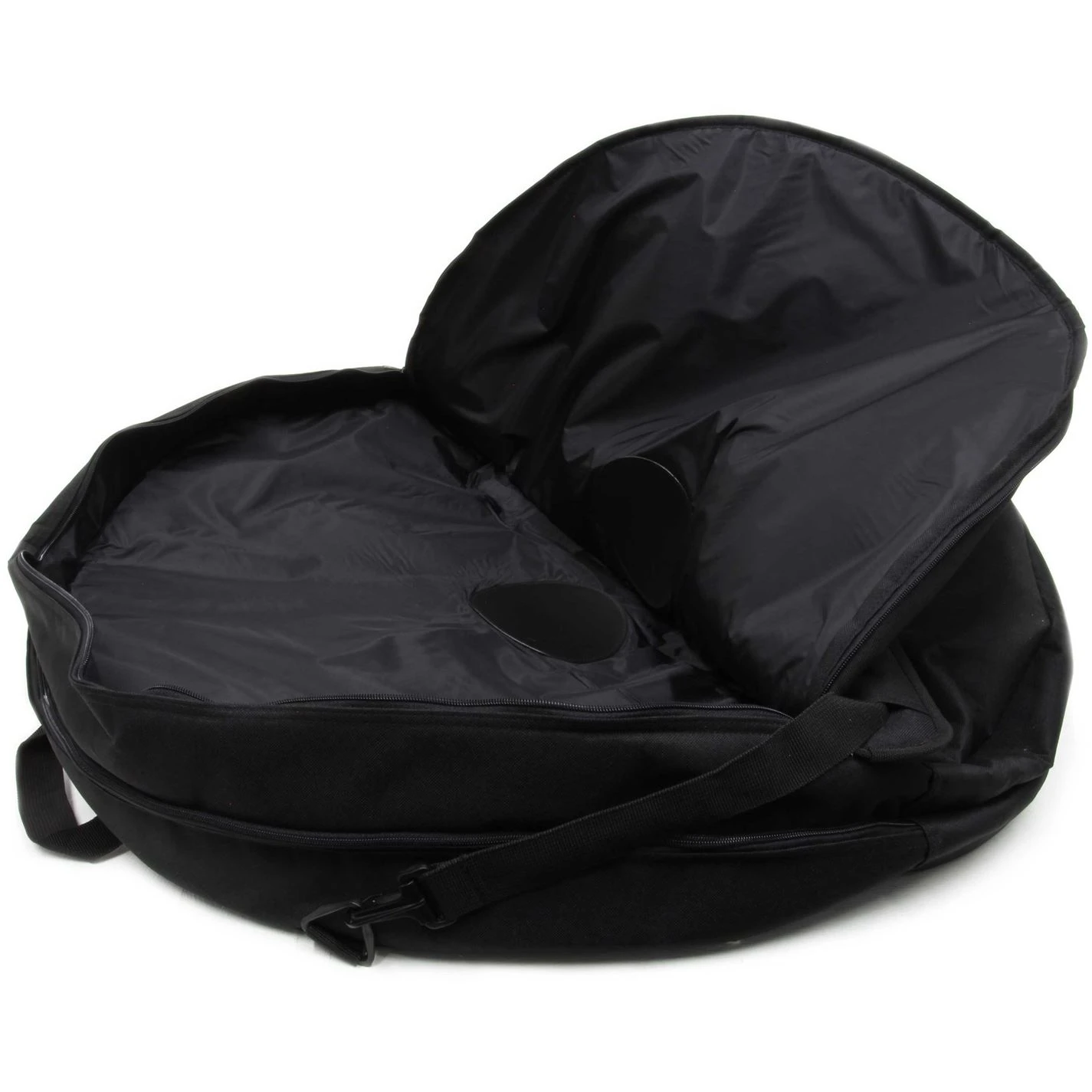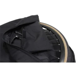 The FWE Double Wheel Bag features separate zips for each compartment, thick foam padding and a reinforced central pad to reduce the risk of damage in transit. It fits 700c road wheels and up to 29″ mountain bike ones.