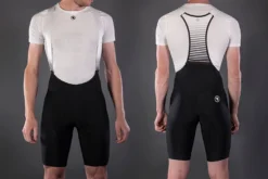 - New bib construction combining wide elastic straps and supportive high wicking rear panel