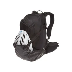 > 1 main compartment with easy 2-way access (top and bottom), subdivided by a removable floor and two mesh inside pockets > 1 fleece-lined pocket in the main compartment > 1 large front compartment with 3 inside pockets (mesh) and a key-pocket > 1 small front pocket (easy access via zipper) > 2 large, elastic side compartments with several pockets for tools and a pump > 2 large, elastic hip-belt pockets > 1 pocket for maps (in the front flap) > 1 hook loop for a smartphone pouch on the shoulder strap > 1 pocket with a rain cover in backpack’s floor