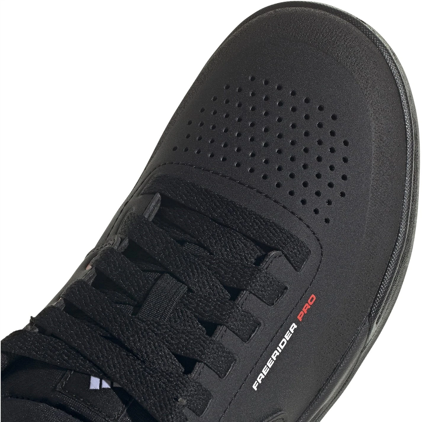 A completely updated version of the legendary Freerider, the Five Ten Freerider Pro Flat Shoe touts superior toe protection and quicker drying than its predecessor while still utilizing a full, S1 dotty outsole for proven grip and durability. These flat pedal biking shoes provide grip and durability for all-mountain and enduro riding. An impact-resistant toe box complements the medium-stiff build for a responsive ride. The signature sticky rubber and purpose-built tread pattern keep your feet firmly planted on your pedals. The shoes have a casual look for times off the bike.