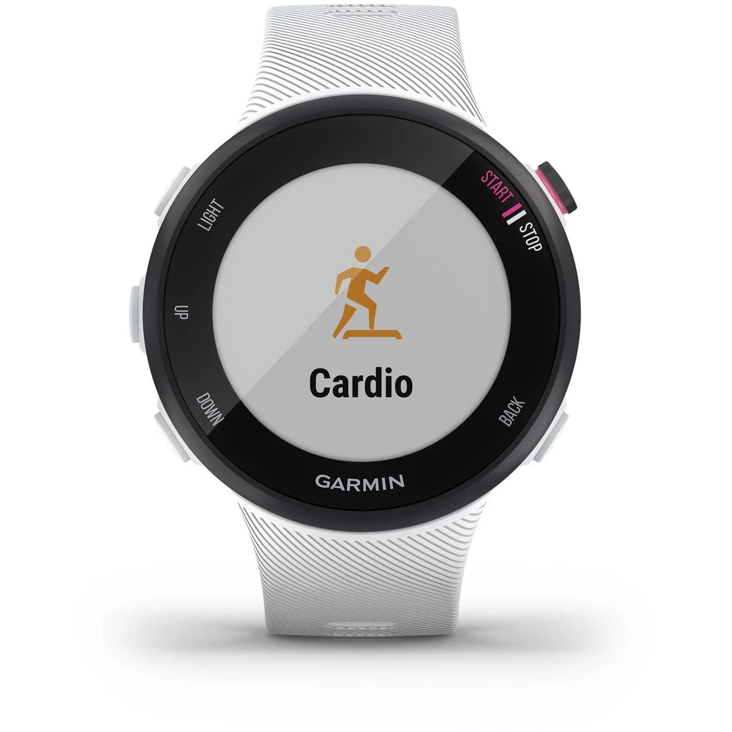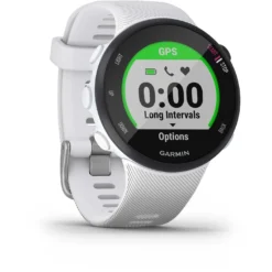 When you lace up your shoes and get ready to run, make sure you have the right tool for the job. Forerunner 45 is the GPS running watch with all the running-related features you need in a sleek, lightweight smartwatch. This easy-to-use running watch is perfect for daily runs, training sessions and even that upcoming 10K you got talked into. Built-in GPS tracks where you run and gives you accurate stats, including distance, pace and intervals. Its intuitive button interface makes it easy for sweaty hands to mark a lap or pause the timer. Forerunner 45 also monitors heart rate at the wrist, day and night.