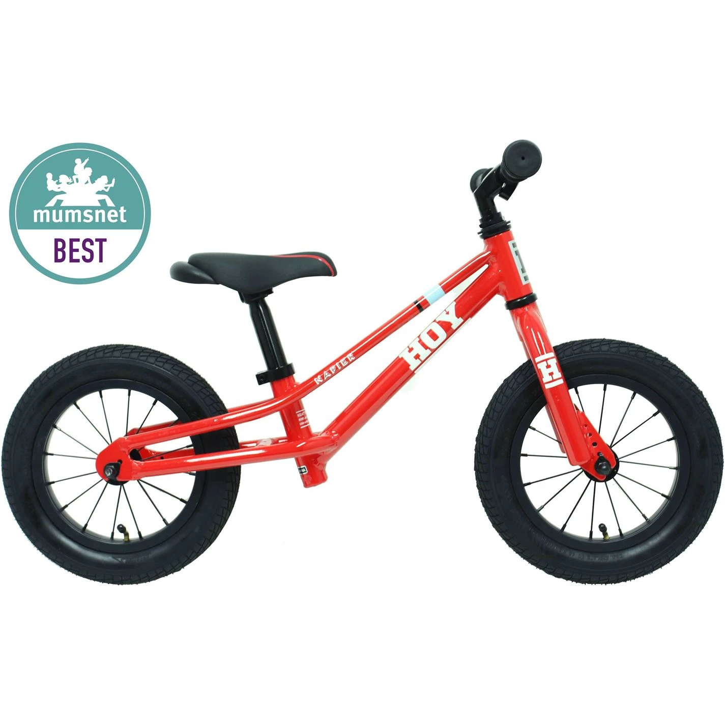 Awarded best buy by Mumsnet, the Hoy Napier is styled after the BMX bikes of Sir Chris Hoy’s early BMX racing days, the Napier Balance Bike is a great starting point for a young rider’s first steps. Named after the Napier school yard where Sir Chris Hoy learned to ride his first bike and made with all the same attention to detail as the other bikes in the Hoy bikes kids range, this is a Hoy bike in every sense. With lightweight aluminium tubes, a saddle with a grab-rail for easy carrying and a stopper in the headset to stop kids over steering.