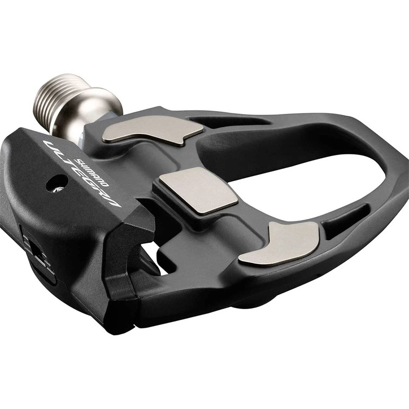 The Ultegra R8000 SL SPD carbon road pedals from Shimano is designed as a high-performance road SPD pedal. The light weight carbon pedal body provides a large contact surface that maximises power transfer and support. A low profile pedal body increases clearance when cornering. The large binding allows for quicker engagement and more efficiency pedalling paired with a open design allows for easy access and cleat adjustment. The Ultegra R8000 use a low maintenance sealed cartridge bearings.