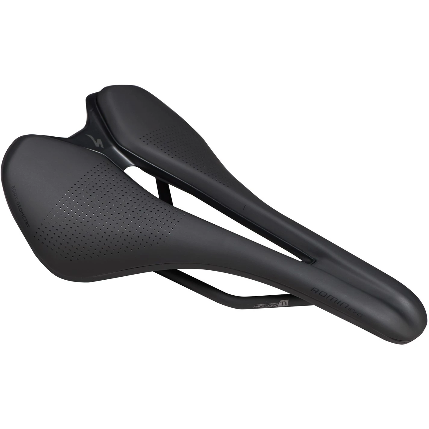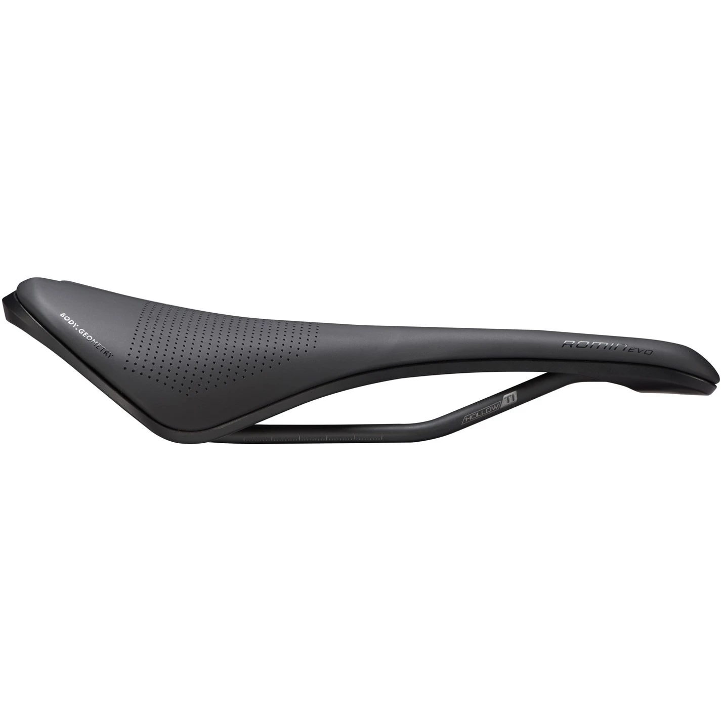 Keep it low and aero without sacrificing comfort. The titanium-railed, lightweight Romin EVO Expert Gel is road saddle contoured to put you in a position for optimal power transfer and comfort as you put pressure on your competition. Its supportive foam and gel inserts increase comfort even while in a competitive, more aerodynamic position, while the Body Geometry channel is designed to maximize blood flow while riding.