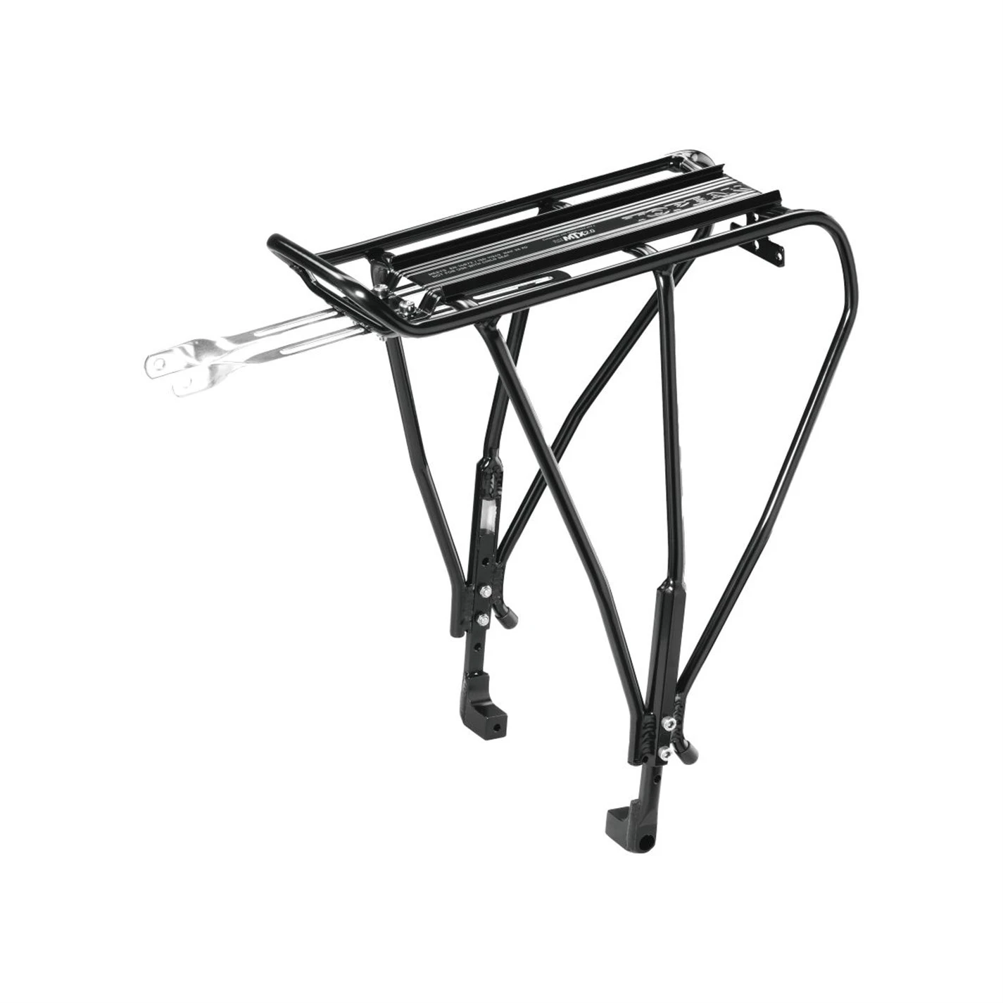 This one-size-fits-all aluminum tubular rear rack is equipped with adjustable legs to fit most 24 to 29 wheel MTB and 700C touring bikes. This tough tubular rack is perfect for touring, commuting, or running errands in town. The MTX QuickTrack plate is compatible with any Topeak MTX TrunkBag, MTX rear basket, MTX 2.0 TrunkBag, and most other rack packs and panniers on the market.
