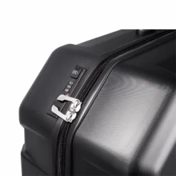 > Fits most bikes with wheelbase up to 112 cm / 44 > 100 Makrolon. polycarbonate shell with reinforced aluminum internal frame > Frameset mounting system/ mini workstand > Compatible with QR axle or 12mm thru axles > Integrated TSA lock > Upright case design > Four large 60mm multi-directional wheels > Ergonomically placed carry handles > Inner pockets > 2 wheel bags > Drivetrain cover > Protective sleeves > Protective foams for frame tubes and fork blades > 126x83x33cm > 10kg (case only), Approx 12.8kg (inc protective materials)