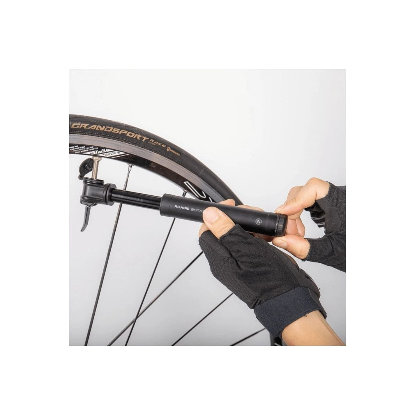 The Roadie 2Stage mini pump features an innovative 2Stage pressure selector that lets you choose high volume or high pressure to quickly fill your road bike tire effortlessly. Compact size easily fits into a jersey pocket.