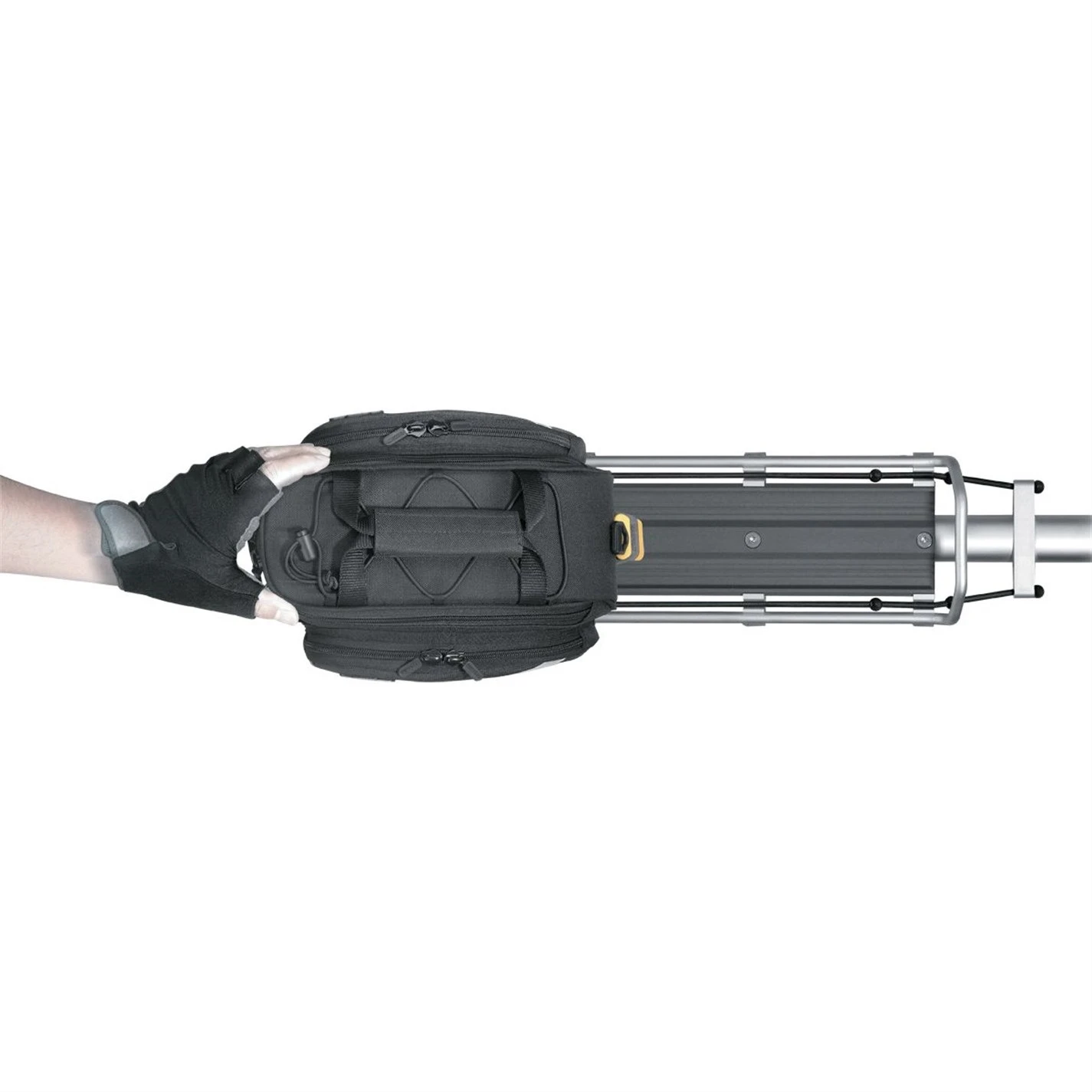 > 600 Denier Polyester Dupont Teflon Coating for superb weather resistance > Expanding main compartment with two side panniers and a multifunction top pocket > Aerodynamic rigid foam walls > 3M reflective strip for safety > Built-in carrying handle, plus detachable shoulder strap > QuickTrack mount for Beam Rack RX > Elastic top bungees > Safety light clip > 31×20.5×16-25cm > 7.31L > 755g