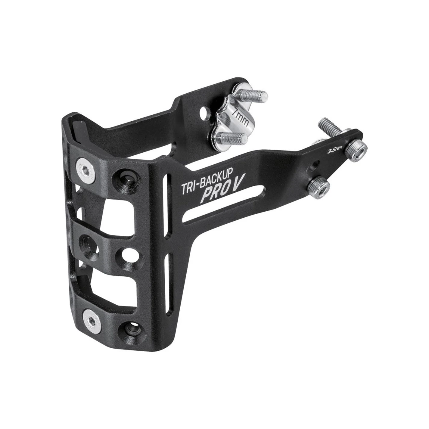 > Adjustable for 2 angles > Aluminium construction > Holds 1 or 2 bottle cages > Compatible with Tri-Backup Air Station, Bags, Ninja bottle cages and traditional bottle cages > 102g