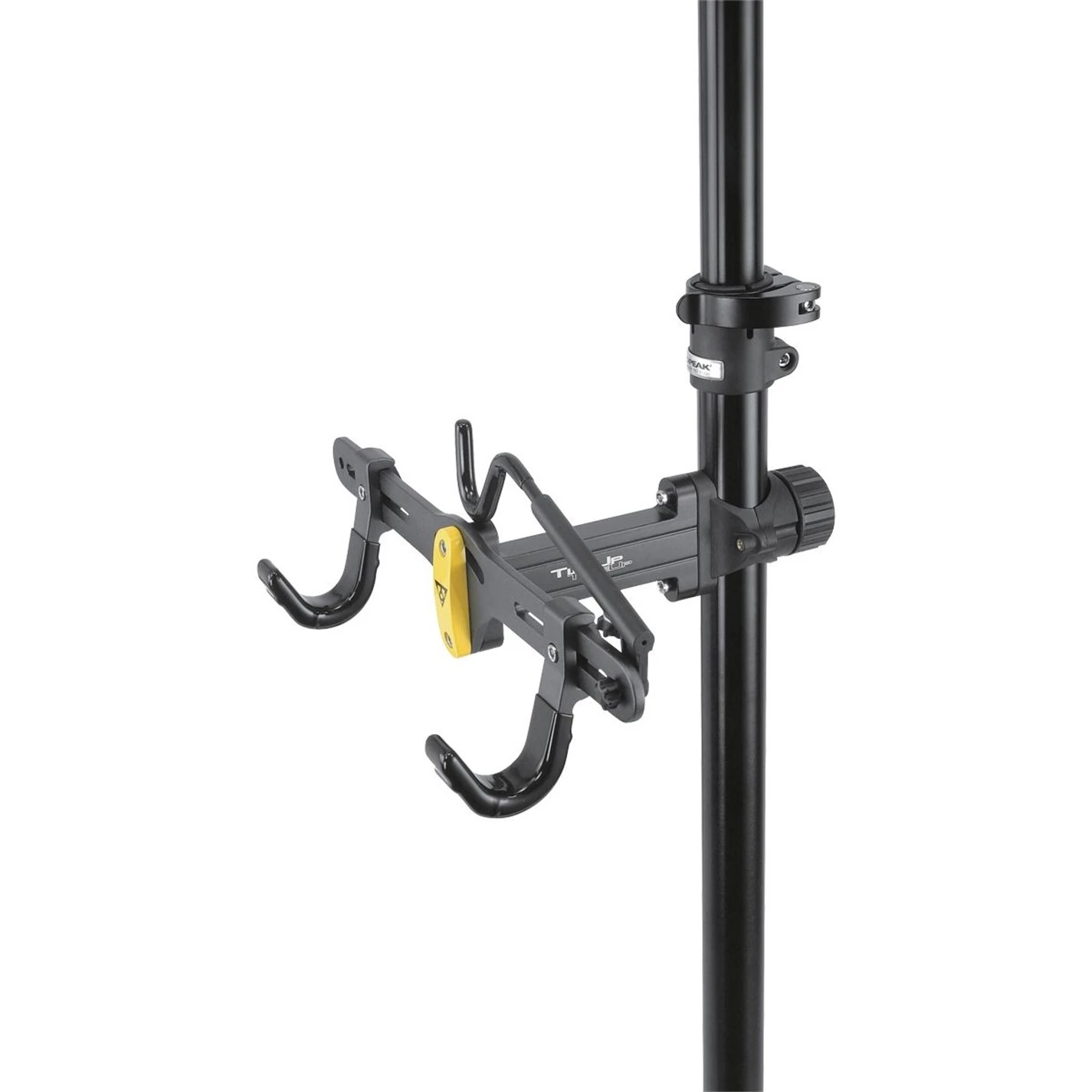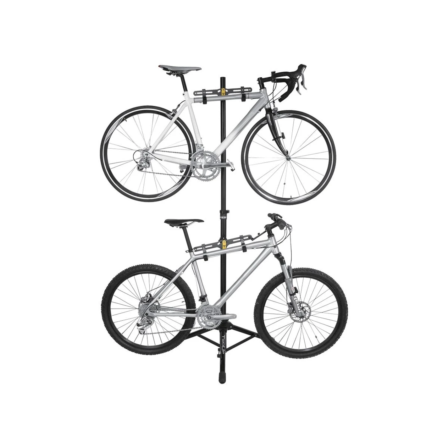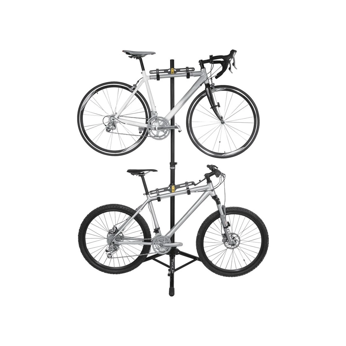 This multi-bike storage system is solid enough to double as a portable workstand using the lower mounting bracket. Constructed from aluminium tubing, the centre pillar extends to almost 7 feet while the tripod base provides a stable support. Stores up to 4 bikes (two brackets included)