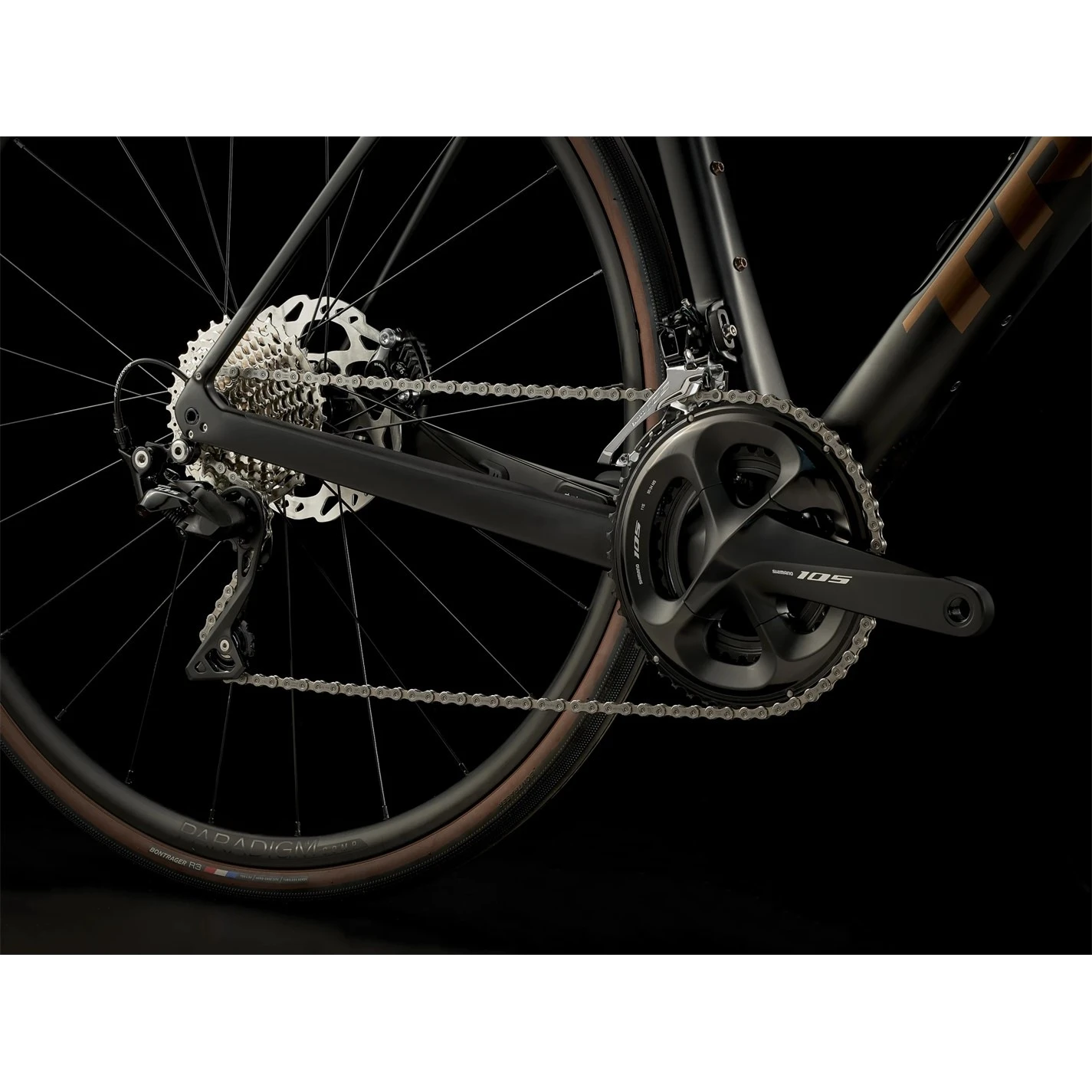 The Domane SL 5 is all about smooth riding, speed and versatility. The OCLV Carbon frame has both Front and Rear IsoSpeed to smooth out bumps in the road and reduce fatigue so you can stay stronger on long adventures. It has a reliable Shimano 105 drivetrain, disc brakes for all-weather stopping power and an easy-access internal storage compartment for stowing ride essentials.