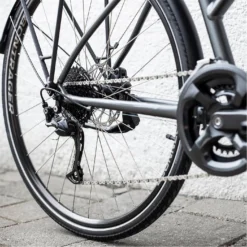 - Shimano drivetrain with 18 speeds and a wide range of gearing so you’re never pedalling too hard or too soft